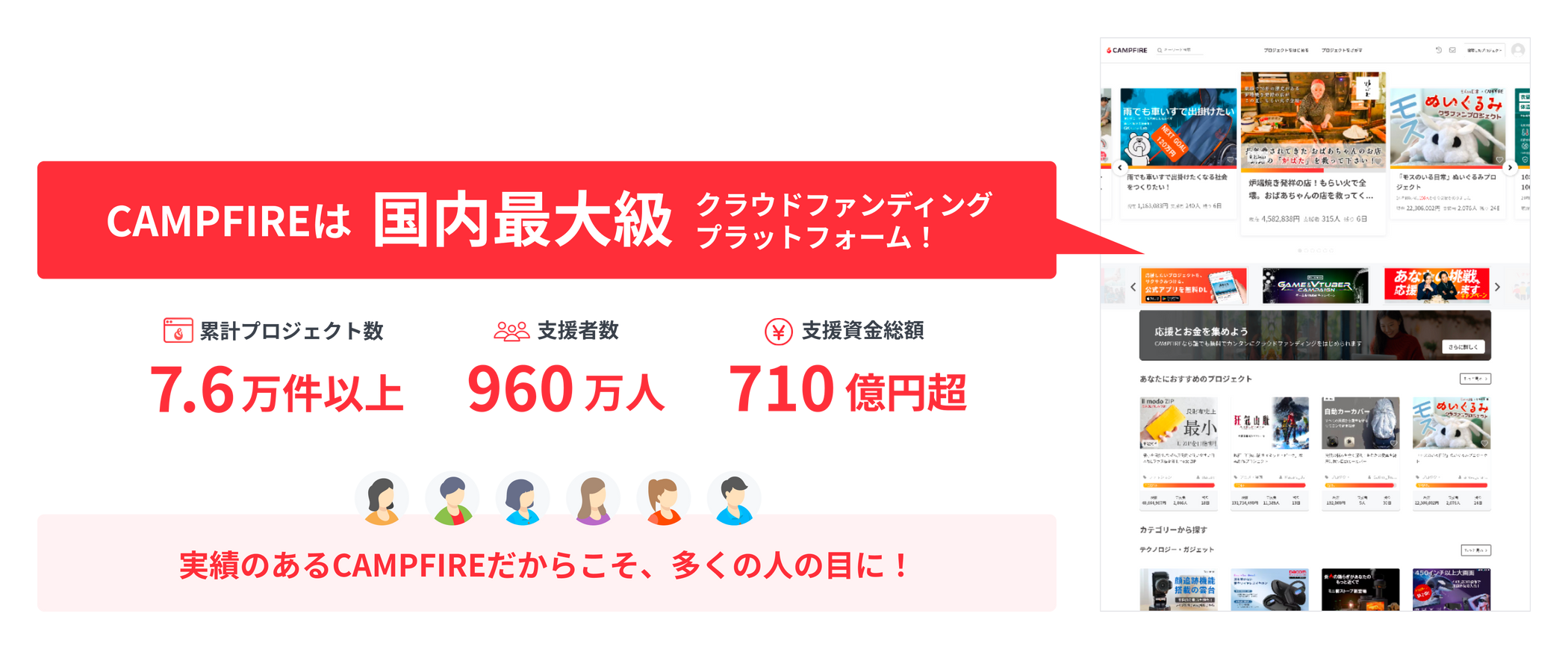 CAMPFIREでクラウドファンディングを行うことで多くのユーザーの目につきやすくなり、様々な人にあなたを知ってもらう大きなキッカケとなります。