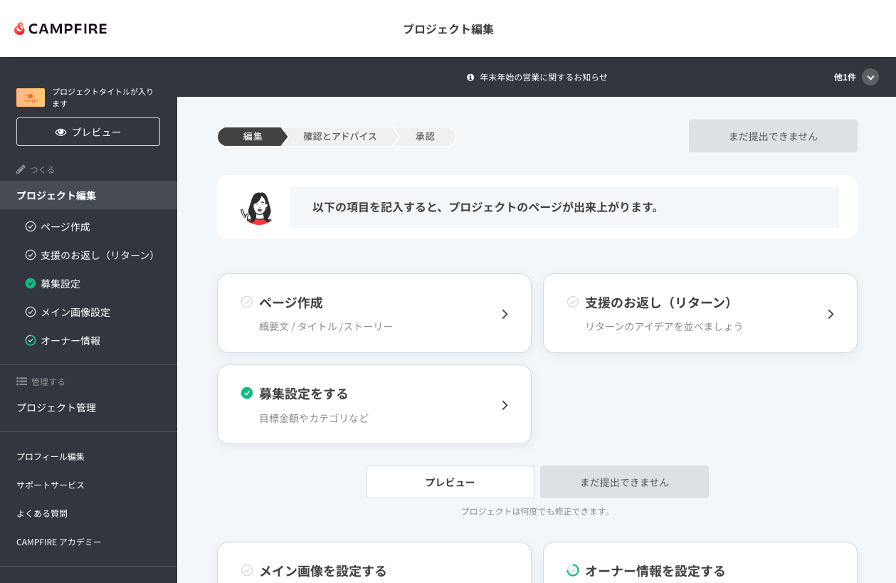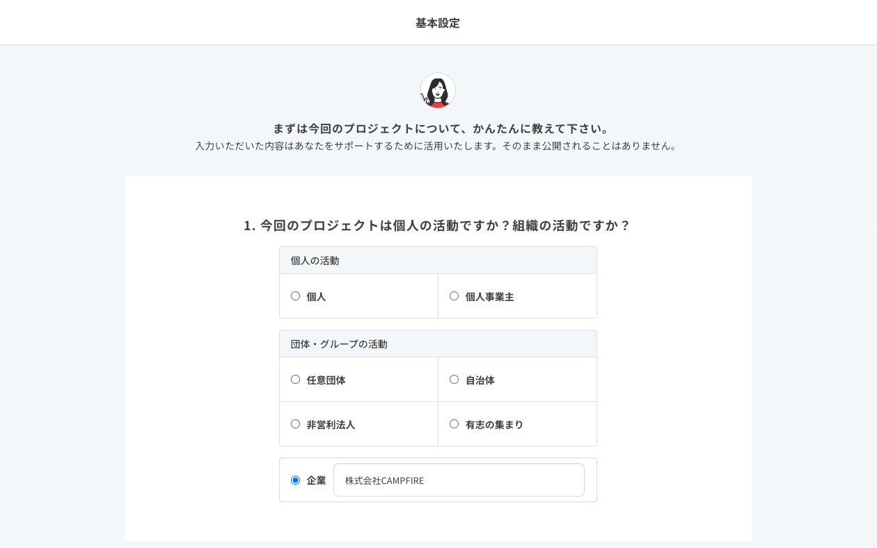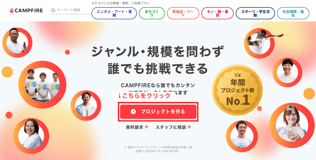 CAMPFIREアカウント作成後、下記リンクよりプロジェクトを作成してください。