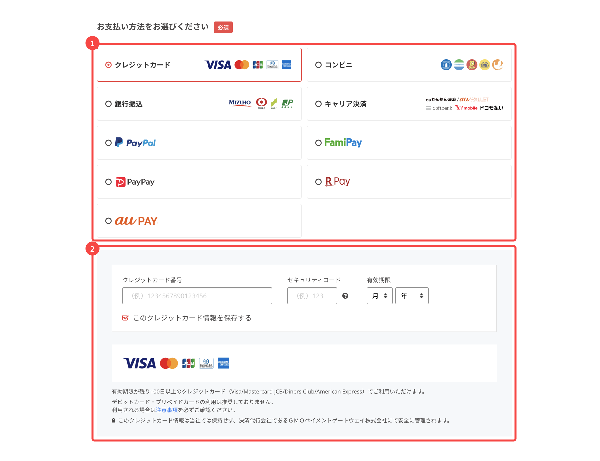 お支払い方法を選択してください。