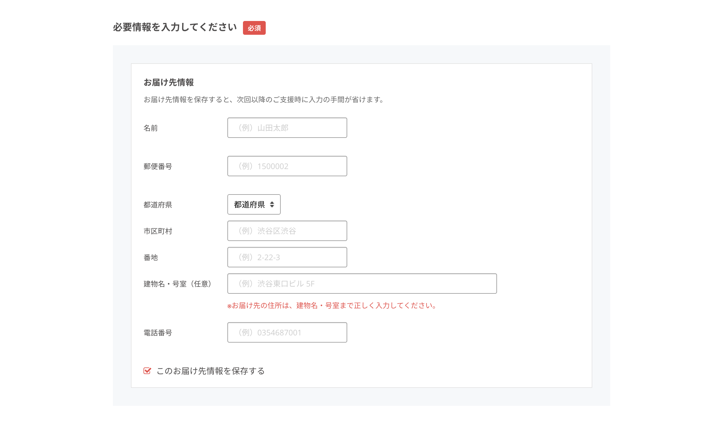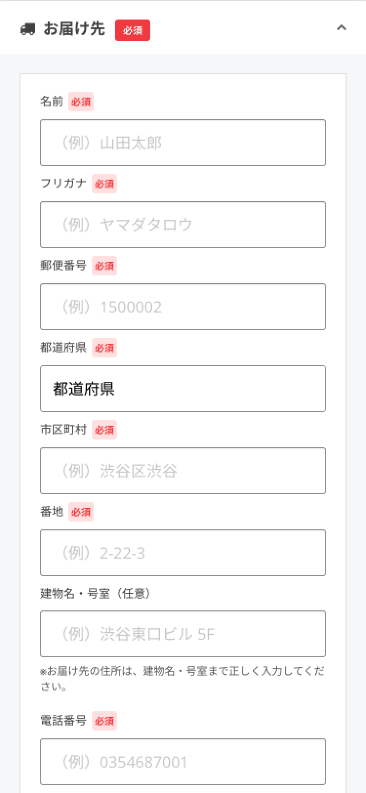 ※ 集合住宅にお住まいの場合は、建物名、部屋番号まで入力してください。