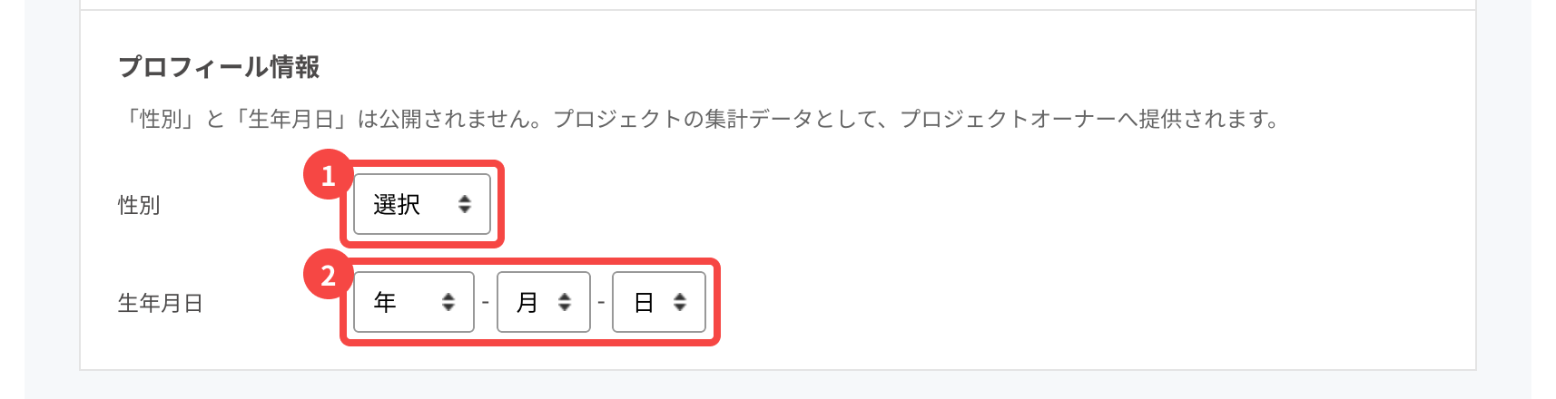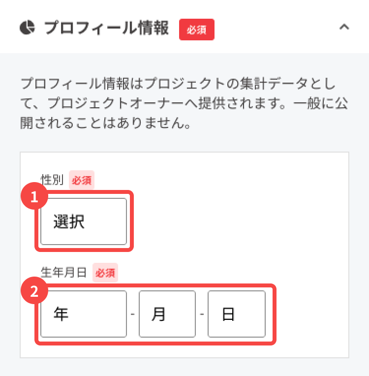 6. プロフィール情報の入力欄が表示されている場合は、性別と生年月日を選択してください。