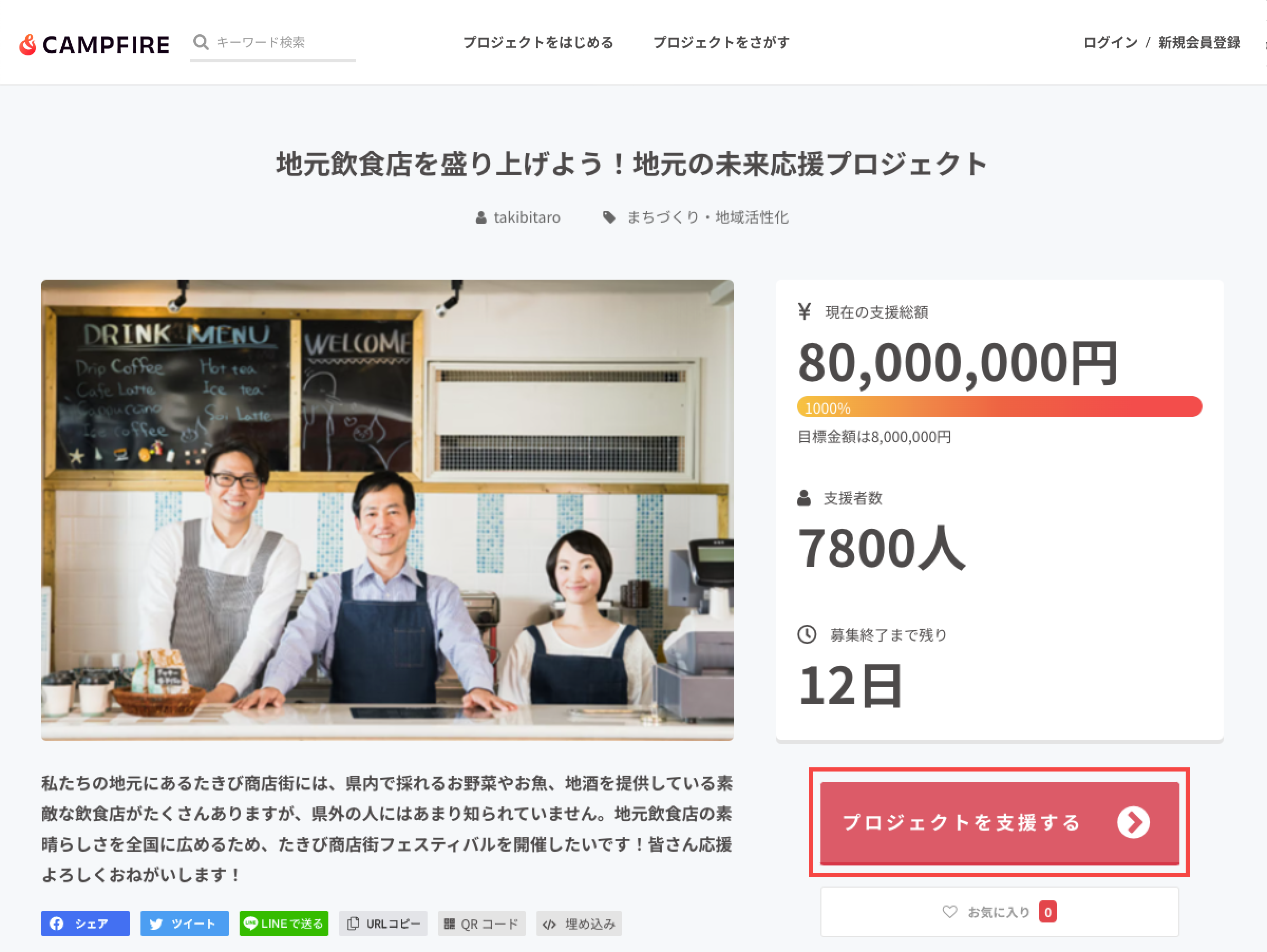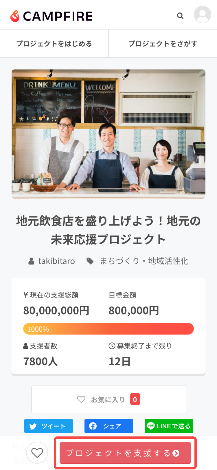 1. プロジェクトページを開き、【プロジェクトを支援する】ボタンを押してください。