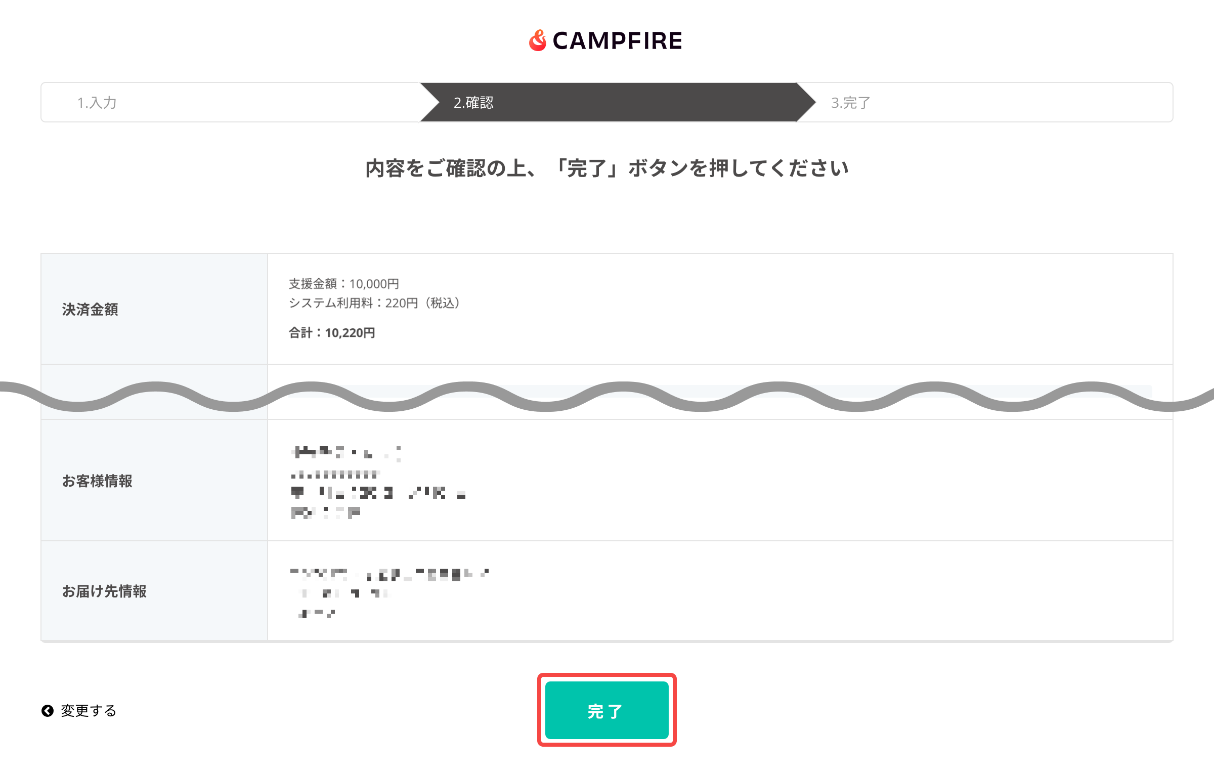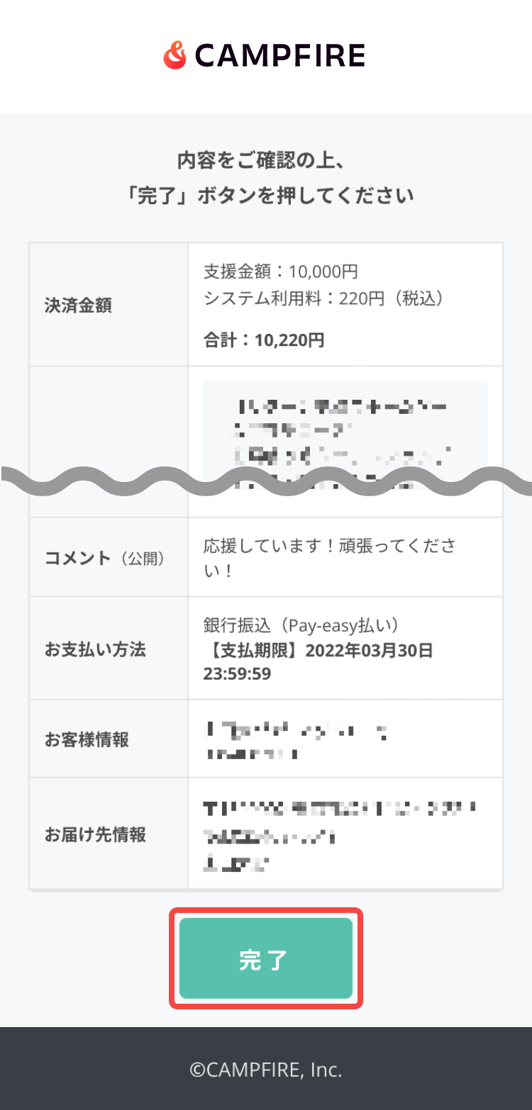 登録したメールアドレスに支援完了のメールが届いていなければ、もう一度【プロジェクトを支援する】ボタンを押して、支援に必要な情報を入力しなおしてください。