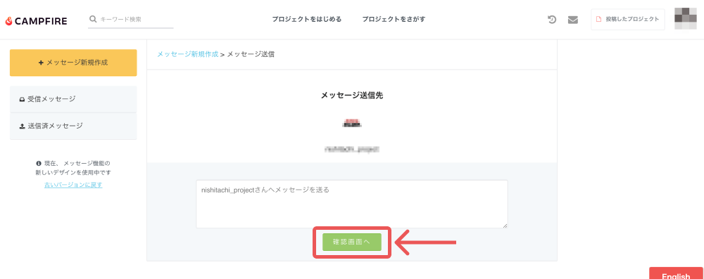 → https://camp-fire.jp/mypage/messages/select - 対象となるプロジェクトを選択