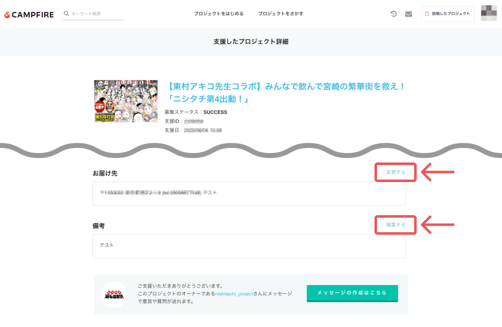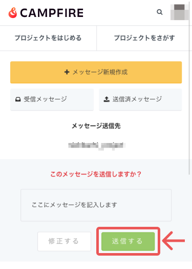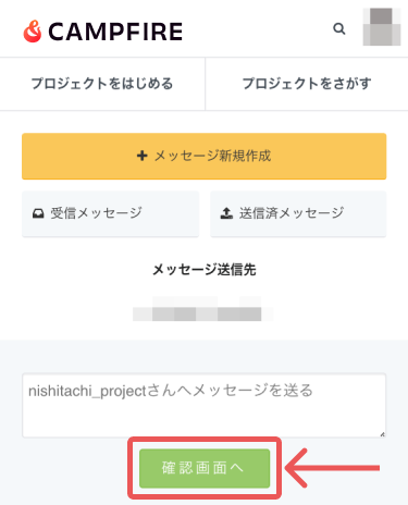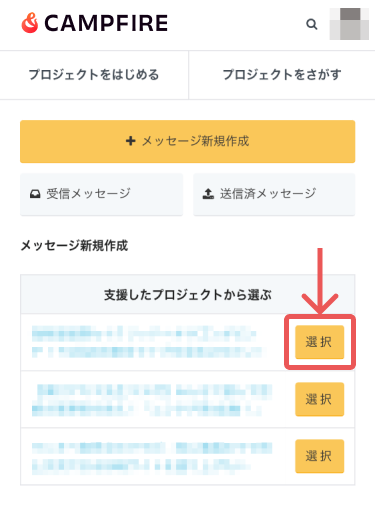 → https://camp-fire.jp/mypage/messages/select - 対象となるプロジェクトを選択
