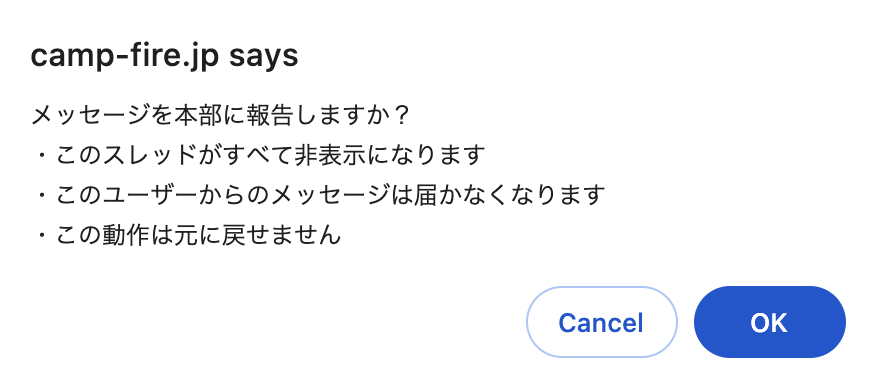 - 通報したメッセージはメッセージ一覧から削除され、元に戻すことはできません。