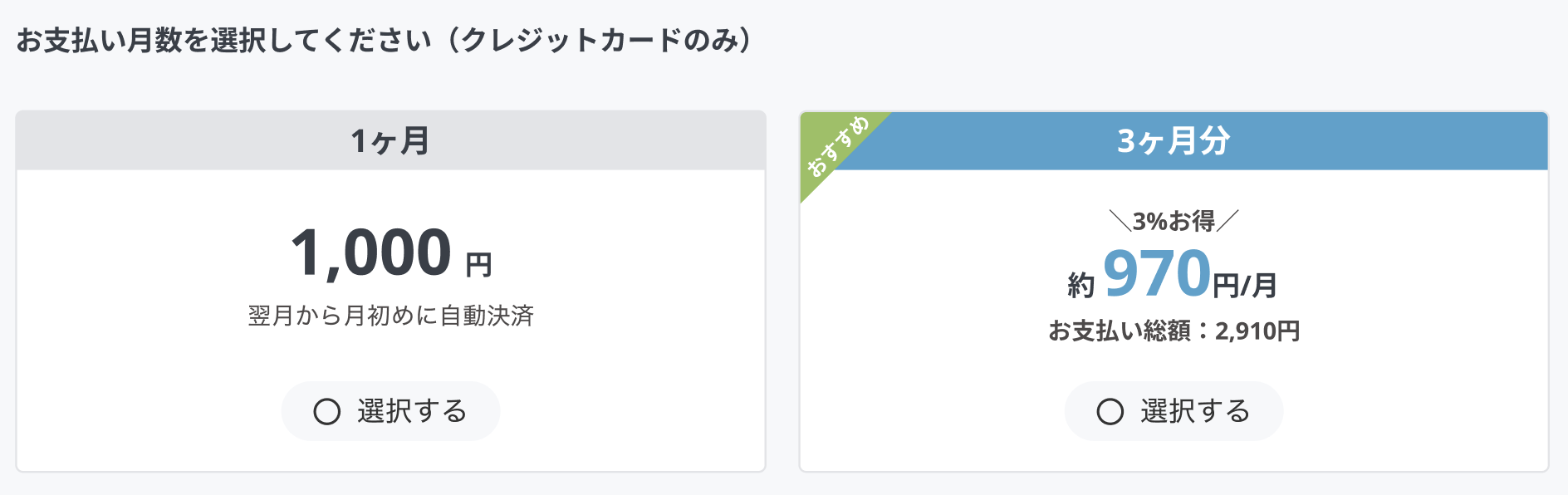 ※「1ヶ月」をご選択いただくと割引は適応されませんのでご注意ください