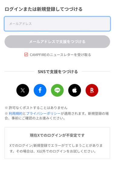 CAMPFIREではアカウントをお持ちでない場合でも、