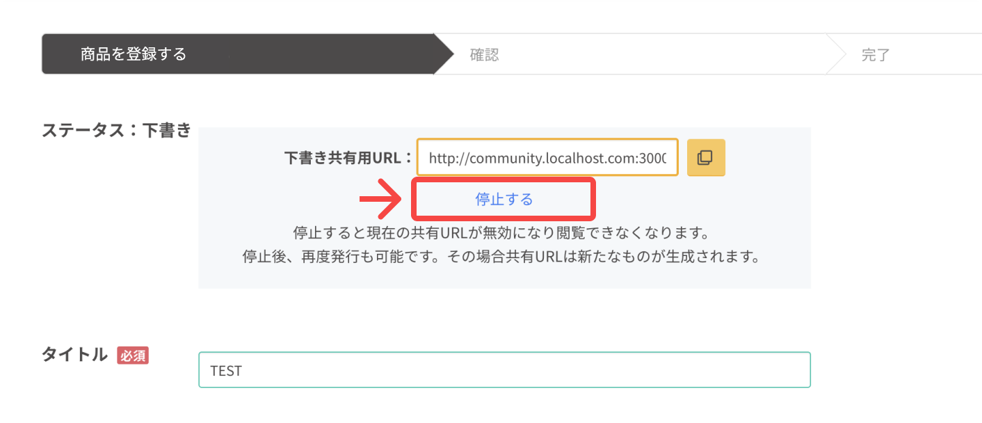 下書き共有URLを停止したい場合