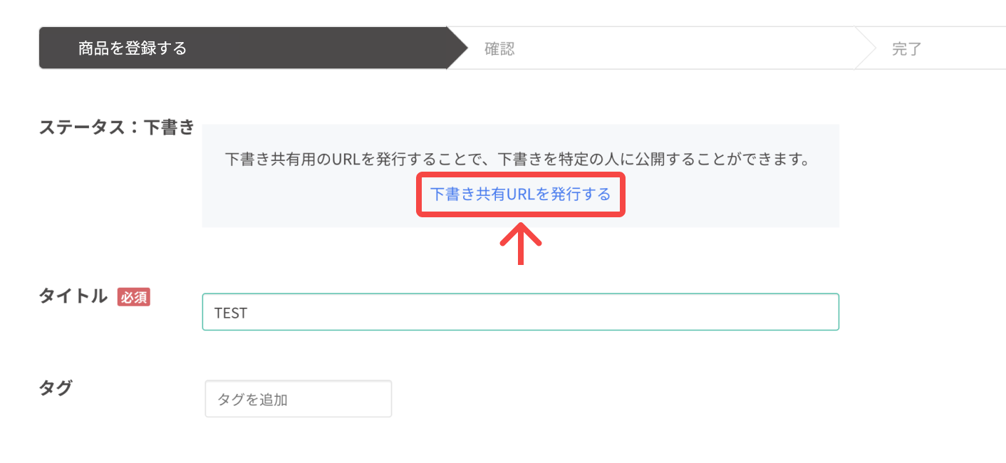 下書きを保存後、[下書き共有URLを発行する]を押し、URLを発行してください。