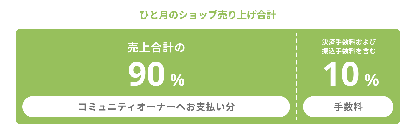 2026/02/26 【ショップ機能】販売手数料は? ショップ機能の手数料は、ひと月内で購入された総額の10%( 税抜き)です。 90%をコミュニティオーナーへお支払いします。 別途発生する決済手数料および振込手数料はCAMPFIREが負担します。