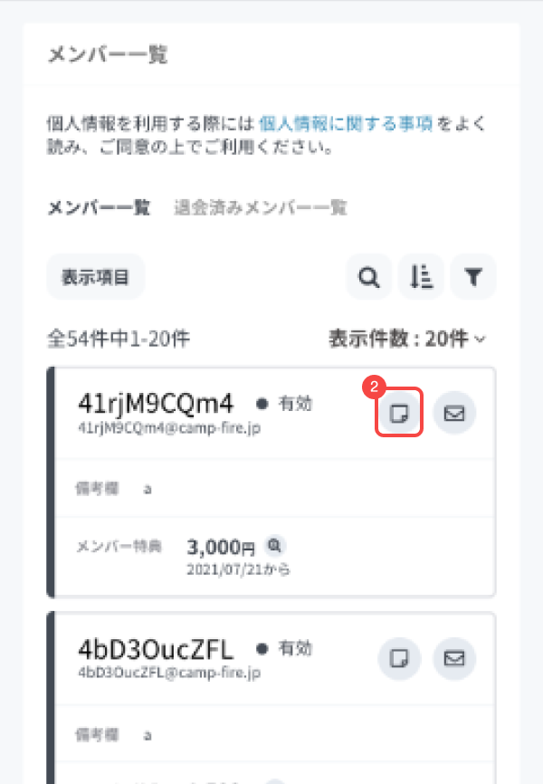 - メンバー一覧の[メッセージアイコン]ボタンを押してください。