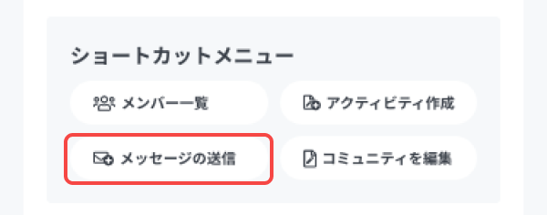 ダッシュボードトップの「ショートカットメニュー」の[メッセージの送信]を押してください。