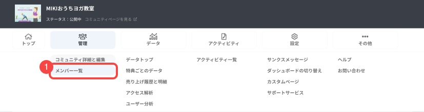ダッシュボード上部のナビゲーションバーの「管理」から[メンバー一覧]を開きます。