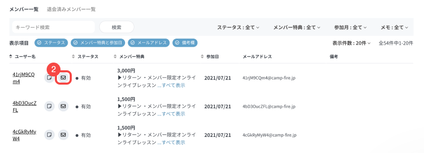 特典ごとのメンバーに一斉送信する