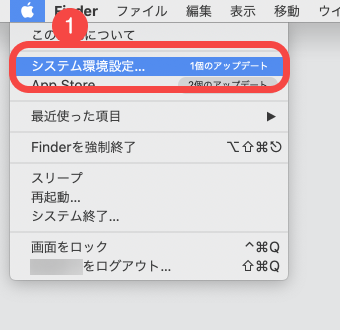 - 左上[アップルアイコン]から[システム環境設定]を開きます