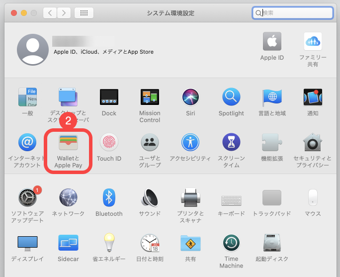 - [WalletとApple Pay]を開きます