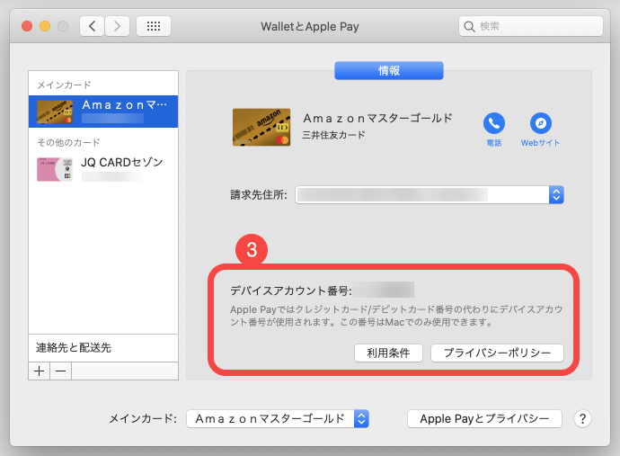- 確認したいカードを選択すると、デバイスアカウント番号が表示されます
