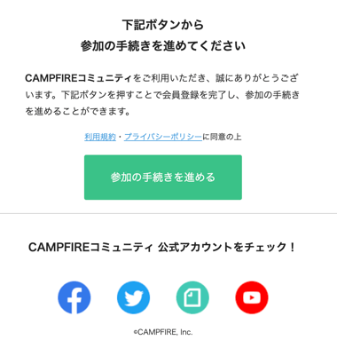 メール内の「参加の手続きを進める」ボタンを押してください。