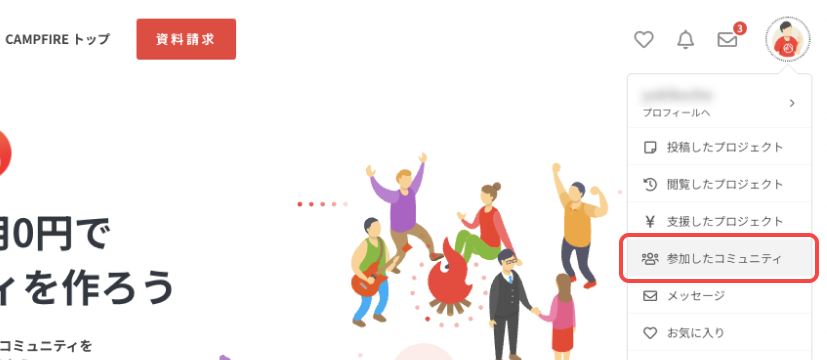 1. [参加したコミュニティ]を押します。