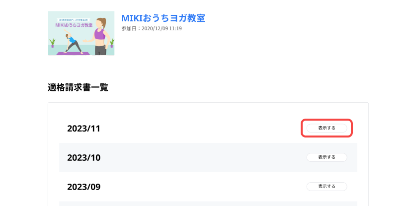 4. 発行したい該当月の[表示する]を押します。