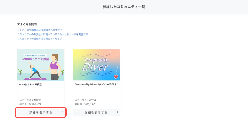2. 対象のコミュニティを選択し、[詳細を表示する]を押します。