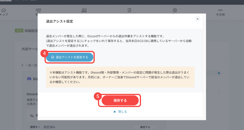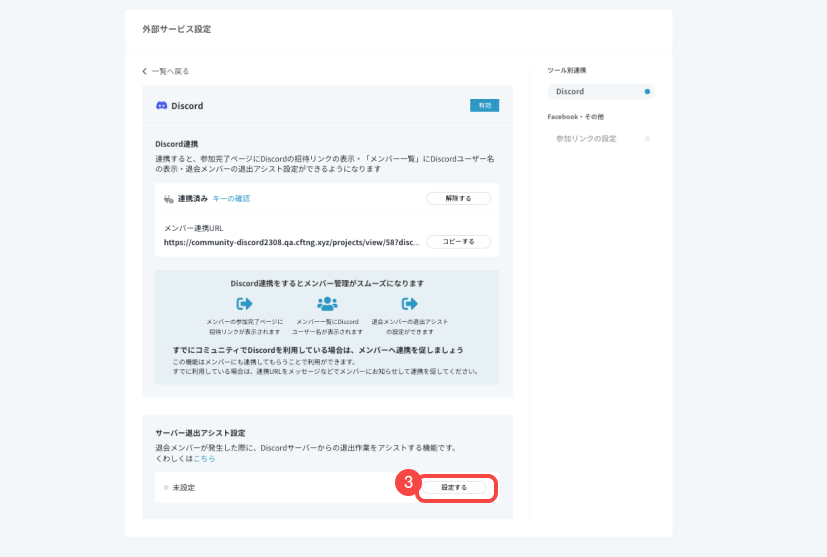 【外部サービス設定】Discord連携 退出アシスト設定の利用方法は?