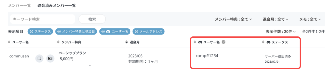 ※退会メンバーのDiscordユーザー名は退会月のみ表示され、期間が過ぎると自動的に非表示になります。