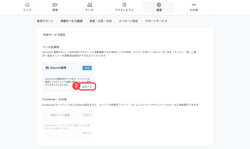 - Discord連携の[変更する]を押します