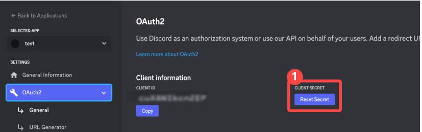 1. OAuth2ページのClient informationのCLIENT SECRETの[Reset Secret]を押す