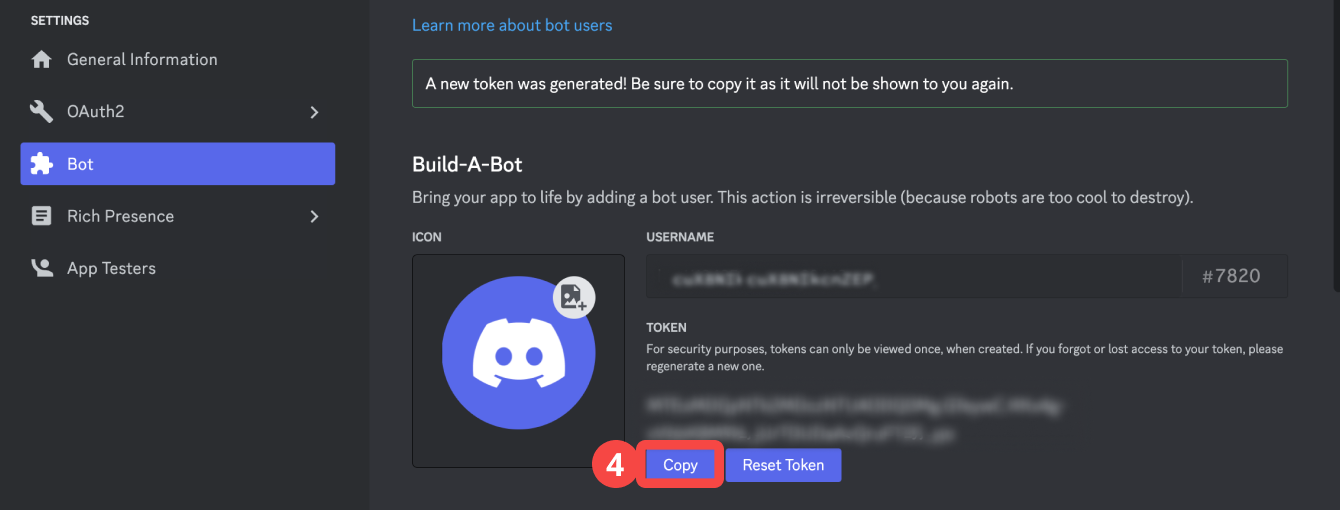 4. 連携用のBotを作成し、Bot Tokenを入力する