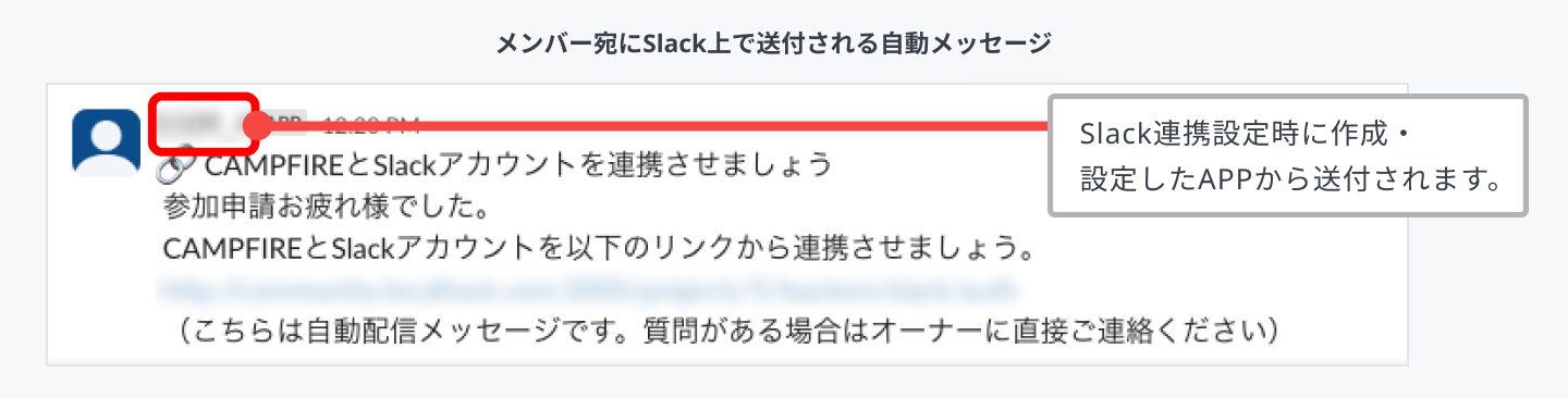 設定しておくと新規メンバーがSlackワークスペースに参加した際に、Slack上に自動メッセージで連携用のURLが送付される機能です。