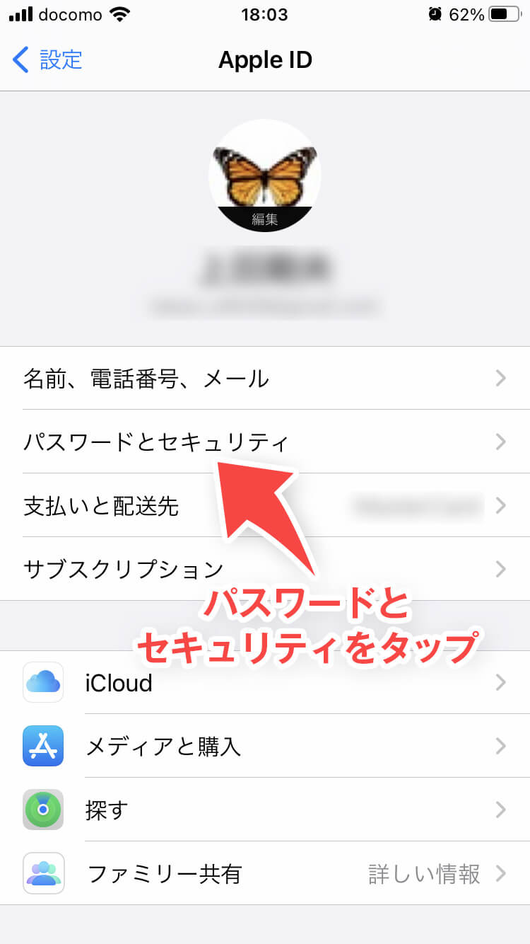 - 「パスワードとセキュリティ」を押す