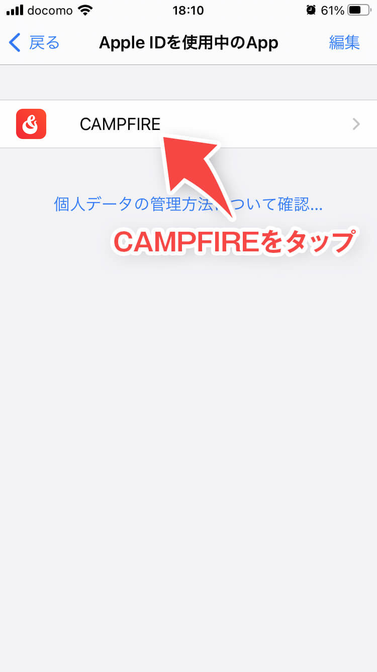 - Apple IDを使用中のAPPの「編集」を選択