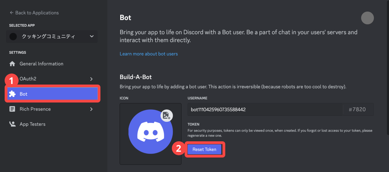4. 連携用のBotを作成し、Bot Tokenを入力する
